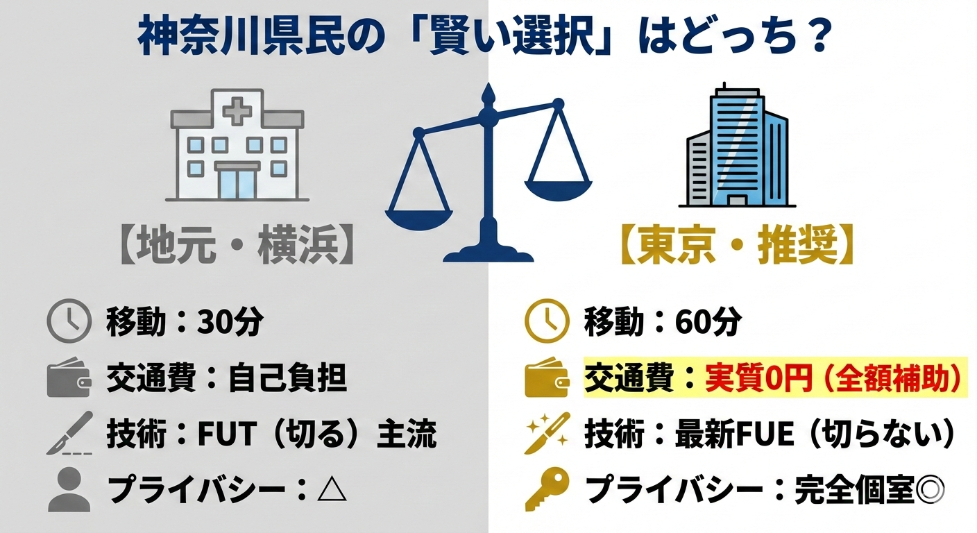神奈川県内で受けるか、東京まで足を運ぶかという選択は、多くの人が直面する現実的な悩みです。自毛植毛は医療行為であり、術者の経験やクリニックの体制によって仕上がりやリスク管理に差が出る可能性があるため、立地だけで判断するのは注意が必要です。
